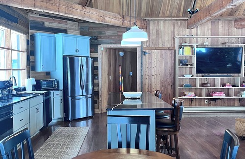 this somerset chalet was modern-renovated while preserving its woodsy charm in 2023 It boasts a massive great room with wood burning fireplace, fully renovated baths and kitchen, with brand new appliances and fully equipped for any chef to enjoy. With plenty of space for 10+ guests to relax and unwind, there are 3 inviting bedrooms each with unshared walls and excellent privacy, a charming loft, and dining seating for 14.