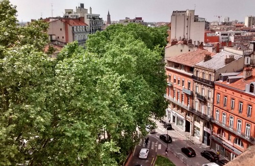 the apartment is located on the 9th and last floor with a breathtaking view over the rooftops of Toulouse and its monuments. it is at the center of Toulouse life with its restaurants, bars, cinema. the train station is 15 minutes walk the metro 100m, the buses at the bottom of the building, the airport shuttle, a Vinci public car park in front of the building.