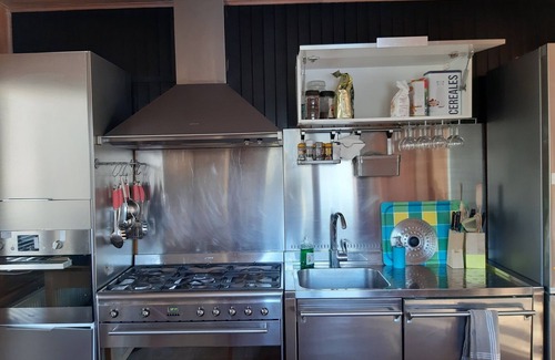 in the middle the kitchen makes it possible to accomodate a large table . on the ground floor the chalet offers an apartment of 45 m2 for 4 or even 5 beds with parental room and sofa bed. always on the ground floor is the boiler room with the common washing machine, the clotheslines; a skis and shoes area.