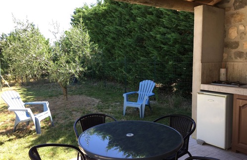 Living room (23m2) with sofa bed (convertible into bed 140), 9m2 chamber (couchage140), WC bathroom, terrace without opposite (living room of garden and sun baths, parasol) and large fenced yard, kitchen outdoor barbecue cooking plate 2 fires gas, refrigerator, sink, dining etc .... comfort: .. Campaign environment. Pets welcome. A 2.5 km from the village (multi-service grocery store, PTT, bar, restaurant etc .....).