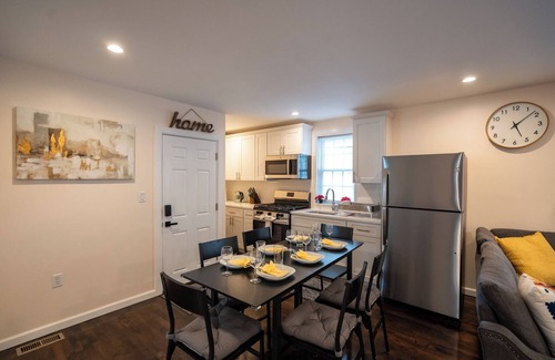 located on the first floor within a 3-story building, this newly renovated and modern apartment is ideal for groups or large families visiting the city The apartment boasts four elegantly styled bedrooms and one full bathroom. Guests can also enjoy convenient parking with one reserved parking space in the backyard and free street parking (if available).