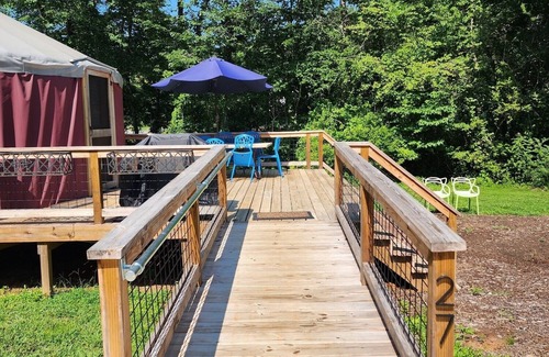 30' ADA Yurt with a large deck, on the creek, full kitchen, dome skylight, dog friendly, 2 bedrooms, sleeps 5 is located in Mill Spring. 30' ADA Yurt with a large deck, on the creek, full kitchen, dome skylight, dog friendly, 2 bedrooms, sleeps 5 provides accommodation, featuring Air Conditioner, Pool, Accessibility, among other amenities. This House features Air Conditioner, Pool, Accessibility, to make your stay a comfortable one.