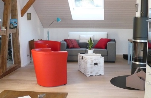 31/2 room attic apartment with large terrace, lake view, 200 m to the lake is located in Ermatingen. 31/2 room attic apartment with large terrace, lake view, 200 m to the lake provides accommodation, featuring Balcony/Terrace, Bedding/Linens, Child Friendly, among other amenities. This Apartment features Balcony/Terrace, Bedding/Linens, Child Friendly, to make your stay a comfortable one.
