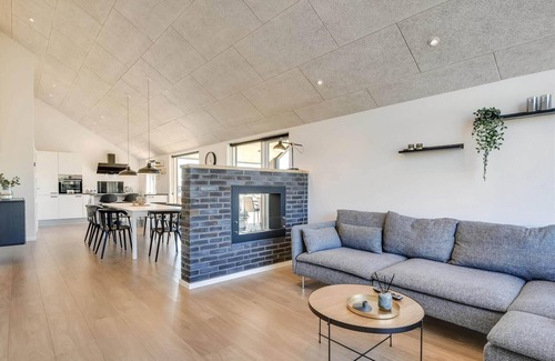 this charming holiday apartment in vrist, west jutland, offers ample space for 8 adults, 2 children, and 1 pet Spanning 135 m² on a generous 1,350 m² plot, it features a cozy design and a wealth of amenities. The open kitchen is fully equipped with a dishwasher, electric/gas hob, oven, microwave, refrigerator, freezer, and a coffee maker, ensuring a convenient cooking experience. The living area includes a fireplace, perfect for cozy evenings, while the 4 bedrooms provide comfort with 2 double beds and 4 single beds. Two modern bathrooms add to the convenience, along with a washing machine and dryer. Guests can enjoy high-speed internet, underfloor heating, and an array of television channels. With a playground swing on-site and just 100 meters to the beach and 700 meters to shopping, this accommodation is ideal for a memorable vacation.