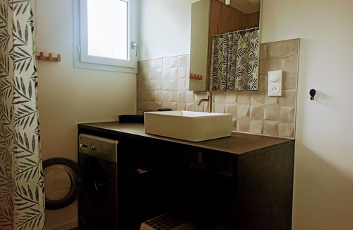 35 m2 with garden 600 m from the beach is located in Labenne-Ocean. 35 m2 with garden 600 m from the beach provides accommodation, featuring Fireplace/Heating, Kitchen, Pool, among other amenities. This Resort features Fireplace/Heating, Kitchen, Pool, to make your stay a comfortable one.