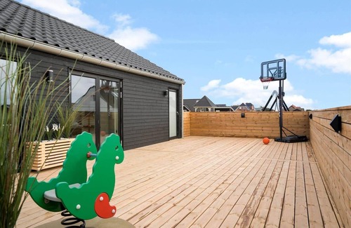 nestled in vrist, west jutland, this spacious holiday apartment accommodates 12 adults and 2 pets Spanning 184 m² on a generous 1,925 m² plot, it features a cozy open-plan layout. Guests will appreciate the modern kitchen equipped with a dishwasher, oven, microwave, refrigerator, coffee maker, and freezer. The living area boasts a charming bio fireplace, while entertainment options include a TV with a variety of channels and a PS3 gaming console. There are 6 bedrooms, each with a double bed, and 3 bathrooms, including a stylish shower room.