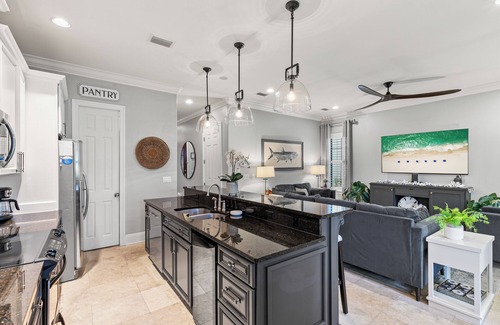located in the heart of the resort, our mediterranean inspired home is just minutes from the area’s best eateries, galleries, boutiques, and nightlife From ropes courses and playgrounds to live music and entertainment at the Village of Baytowne Wharf, there is fun to be had by guests of all ages. And with emerald green waters and white sand beaches just a 10 minute quick golf cart ride away, vacationing is a treat at 1904 Baytowne Loop! *For larger parties, this unit may be rented along with nearby #1906, 1908, and 1925 Villa Lago houses.