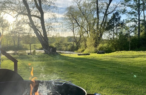 Just over the New York border, across the Delaware River, you'll find magic at the PA Pondhouse! Enjoy two acres of history and nature with modern touches complete with a large fresh water spring-fed pond, fishing poles, games, hi speed wifi, TV, fire pit, grill, garden, renovated kitchen, and more! There are several hiking trails nearby and the Delaware River is a five minute drive and 10 min to Skinner Falls (tubing). there are several wonderful local restaurants, although you may not want to leave the house!
