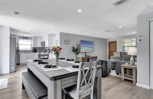welcome to our fully remodeled 3-bedroom, 2-bathroom oasis in dunedin, florida! dive into relaxation with a heated pool and modern amenities Situated on a spacious corner lot, this sleek and stylish retreat boasts new furniture and a contemporary vibe. your dream vacation begins here!
