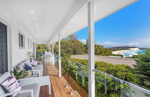 'Seaclusions' is a modern coastal home with fantastic views overlooking One Mile Beach. Feel right at home with the spacious open plan layout that caters for a large family, combined families or group bookings.
