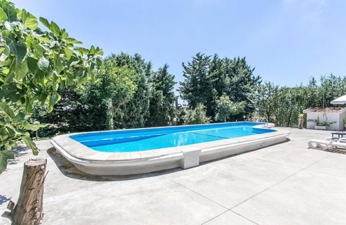 At the outskirts of Ragusa is located this vacation home in the green with a swimming pool surrounded by various plants and palm trees. The property is the ideal solution to spend a vacation in complete relaxation, alternately swimming in the pool or taking long walks or just lazing under the trees reading a good book. Part of the property is dedicated to fruit trees and cultivation (cherry tomatoes, various vegetables available to guests). Outside the kitchen there is a covered porch overlooking the pool. Not far from the pool is a barbecue area and outdoor kitchen. An external staircase leads to the upper floor (attic), which has two sunny verandas with panoramic views of the Iblea countryside. A few kilometers from here you can visit the Castle of Donnafugata, a mansion dating back to the end of the 18th century, a tourist destination known for the perfect preservation of its furnishings. Here you are a few kilometers from the state road 514, which connects various road junctions: In a few minutes you can reach Chiaramonte Gulfi with its pine forest and the atmosphere of a mountain village or Comiso ( ancient Casmena) for a more cultural visit, the charming Ragusa Ibla with its baroque art, Modica, Scicli and much more to discover culture and traditions. If you want to enjoy the crystal clear sea of the Iblea - coast, you can reach the Ragusan beaches in about 20 km. At a distance of about 1 km there is a shopping center with stores of all kinds. One room in the house is reserved for the owner and is used as a storage room.