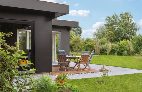 This is about a sunny cottage with modern furnishings and white wood paneling and wall tiles in the kitchen area. Enjoy your hours together in the sun of the fenced garden. Furthermore, you can have breakfast together with your loved ones outdoors and end evenings with freshly grilled food.