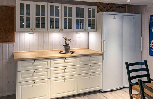 your charming and spacious wooden holiday home is nestled in the picturesque norwegian countryside and offers the ideal place for relaxing days with the family Start the day with a cup of coffee in the cosy living area, which radiates a warm, inviting atmosphere thanks to its wooden ambience. Make yourself comfortable with the whole family on the cosy sofa or enjoy a meal together at the dining table. The well-equipped kitchen has everything you need to prepare delicious family meals.