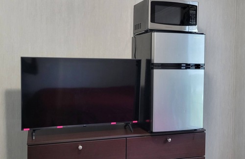 a fully equipped kitchen and laundry room, each bedroom space has a mini refrigerator and freezer, microwave, and a