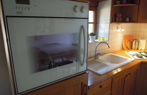 the kitchen is equipped with an oven, a stovetop, and a refrigerator, as well as a coffee maker, an electric kettle, and a microwave And you can even travel light because you'll have access to laundry facilities. Other amenities include a BBQ grill, bed sheets, an ironing board, and a dining table.