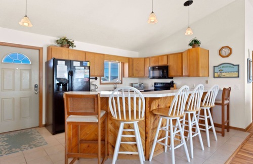 pull up to this beautiful 3-bedroom, 2-bathroom home to know that oceanfront relaxation is here With high ceilings and fantastic natural lighting, the Living Area is both beautiful and relaxing. A large Flat Screen TV sits in front of charming wooden paneling and is surrounded by lots of beachy, cozy furniture (including a Queen Sleeper Sofa) that makes this the perfect place for family movie night or an effortless afternoon catching up on your favorite beach read. Cook up some delicious seafood in the modern Kitchen and enjoy it together in the Dining Area, with table seating for 6, where you can enjoy your meal with spectacular views of the bright, blue waves of the Atlantic. There's also a Washer/Dryer in this home, so no more worrying about sand in those bathing suits.