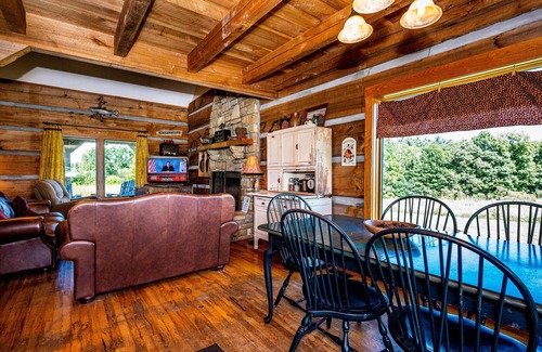 Steal away to the sweet solitude of Bittersweet Farm and discover one of Brown County's truly unique vacation homes. Loaded with warmth and charm, this authentic 4 bedroom, 2.5 bath log cabin is constructed of native poplar sawn at a nearby sawmill and is cozily decorated with various antiques and primitives creating an enchanting ambience.