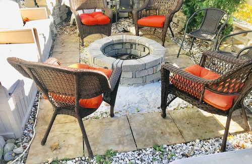 nice backyard with out door furniture & a grill