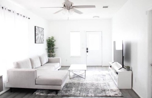 the property is a 4-bedroom, 25-bathroom home with a well-designed layout. The primary living space, fully equipped kitchen, dining area, and a half bathroom are conveniently located on the ground floor, providing easy access and convenience. Upstairs, you will find four bedrooms and two bathrooms. Primary has a king bed and 55" smart Samsung TV, walk in shower and jacuzzi jet bath tub, 3 rooms upstairs have a queen bed and one has a mounted 55" smart Roku TV, so everyone can get an enjoyable as well as comfortable night's sleep.