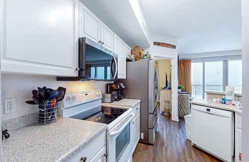 enjoy unobstructed views of the gulf from your spacious beachfront balcony when you reserve this incredible 4th-floor, corner-end condo for your next getaway An open floor plan lets you enjoy the views wherever you go, with plenty of room for everyone to relax. The kitchen is fully equipped and ready for you to prepare your family's favorite recipes, with a dishwasher to make cleanup easy.