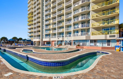 4th floor oceanfront condo w/central AC, balcony, shared pool, shared hot tub is located in Crescent Beach. 4th floor oceanfront condo w/central AC, balcony, shared pool, shared hot tub provides accommodation, featuring Pool, Bedding/Linens, Internet, among other amenities. This Condo features Pool, Bedding/Linens, Internet, to make your stay a comfortable one.