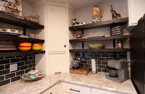 we live nearby but keep our garden and chickens at this property We do visit the back property by the shops to care for the garden (in the summer) and the chickens year round. We do not interact with guests and respect your complete privacy in the home and fenced yards during your stay..
