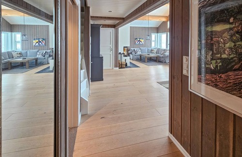 in this spacious vacation home, which offers space for two families, you will spend a wonderful norwegian vacation full of beautiful nature experiences Every corner of your vacation home exudes comfort and tranquillity and provides the ideal setting for your family vacation. The elegant, open kitchen turns every meal into a shared experience. Make a nice cup of coffee here in the morning and then get together later to prepare the meals of the day. In the living area, soft seating invites you to enjoy sociable family evenings, while the fireplace creates a warm atmosphere and invites you to relax with a book or fun games.
