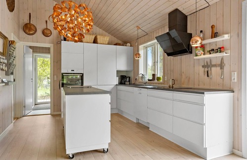 experience a holiday close to nature in this cosy holiday home, the ideal place for quiet time-outs, cooking together and relaxing hours outdoors The bright, open-plan house impresses with its tasteful furnishings and warm wood tones. The living area offers a comfortable sofa, large windows and direct access to the terrace. Use the wood-burning stove for cosy evenings or gather with family and friends at the dining table with a view of the natural surroundings. In the elegant kitchen with kitchen island, you can prepare your favourite dishes in no time at all. The open-plan layout creates a relaxed atmosphere in which to linger.