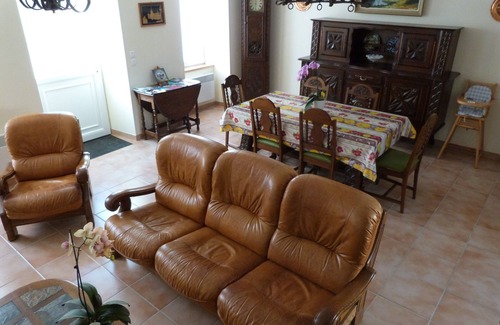 facing south, the garden with wooden terrace 25m2 invites to rest and will delight children and animals a pergola covers the living room garden 12 people You will also find sun loungers, barbecue and ping-pong table.