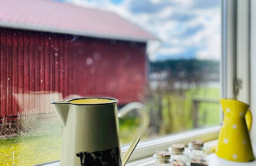 This cozy cottage in the countryside is the perfect choice for a relaxing holiday with friends or family. Just 100 meters from the cottage you will find a beautiful lake, perfect for swimming or trying fishing or just enjoying the view of the water. With an area of well-planned 40 sqm and with five comfortable beds, there is plenty of space for everyone to stretch their legs and relax. The cottage has a sleeping loft with room for two people and a bedroom with a bunk bed for two more people. In addition, there is an extra bed in the living room, perfect for accommodating an extra guest. There is a toilet and shower in the cabin, which means you can stay fresh and clean during your stay. The cottage is also well equipped with all the necessary amenities, including a kitchen for preparing food. In the yard around the cottage there are animals such as cows, calves and chickens. It is a fun experience to see and pet the animals or just watch them run around the farm. You have free access to the bathing jetty which is shared with other accommodation around. The pier on the left is the homeowner's own. The cottage is located on a cozy farm that is in use and where the owners live in the big yellow house. Staying in this cabin is a fantastic way to get away from everyday stress and worries and enjoy a place of peace and quiet in nature. Take the opportunity to visit Vänga mill and its cozy cafe. You only have 22 km to the town of Borås and the well-visited Borås Zoo or why not a day trip to the west coast's metropolis Gothenburg with Liseberg. Warm welcome to a wonderful place and nice stay.