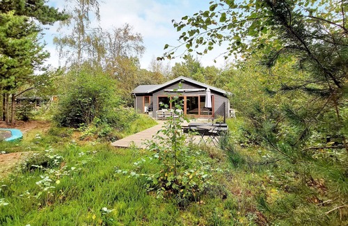 In the forest, approx. 5 min walk from Hemmet Strand at Ringkøbing Fjord, is this holiday cottage with whirlpool and sauna. The many trees on the natural plot provide a very special atmosphere, and squirrels and hares are often guests on the plot. The house and terrace are secluded, sheltered under the trees. The forest along with the whirlpool and sauna help ease away everyday stress. The sauna is heated with wood-burning stove. The living room has picture window facing the woods. Thre is a trampoline (usage at own risk/insurance), swings and barbecue. No letting to youth groups.