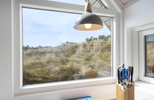 this appealing holiday apartment captivates with its tranquil location on baunebjergvej in haurvig Guests will appreciate the spacious open kitchen, equipped with modern amenities including a dishwasher, electric/gas stove, refrigerator, and coffee maker, perfect for preparing delightful meals. The living area features a cozy atmosphere with sloped ceilings, wooden paneling, and a smart TV offering Danish and German channels. Accommodating up to six guests, the apartment includes three comfortable bedrooms and a stylish bathroom with a shower. Enjoy the convenience of fast Wi-Fi, underfloor heating, and a washing machine. The outdoor terraces provide stunning views of the dunes and blooming heaths, ideal for relaxed breakfasts or evening barbecues. A sauna adds an additional touch of relaxation to the stay. Explore nearby nature trails or the beautiful North Sea beach just 600 meters away for a perfect blend of tranquility and adventure.