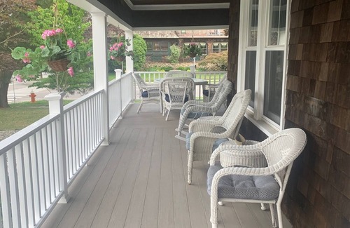 This charming beach house is located in beautiful, historic Neptune Park just 1 block from 4 breathtaking private beaches and Ocean Beach Park. It is a spacious yet cozy with 5 bedrooms and 2.5 baths. This special house is loaded with exquisite original woodwork and molding throughout complete with hardwood floors. The wrap around porch is one of its many wonderful features. Feel the ocean breeze all day long while you sit and read a book or just enjoy the smell of the clean ocean air! The eat in kitchen is bright and spacious with a glazed tile floor. It has all the appliances you need and more. The living room and dining rooms are both very spacious and comfortable with big windows and beautiful detailed wood work. The basement has 2 showers, changing rooms and a separate bathroom perfect for after a day at the beach! Upstairs has five bedrooms and 1 full bath with a huge claw foot tub and shower. The bedrooms all have TV's (cable), air conditioners and/or ceiling fans. Three of the bedrooms have slightly sloped floors adding to the charm of this beautiful old house. I The bedrooms are all very spacious. Two have king beds, one has a queen and the other two bedrooms have 2 twin beds. (sleeps 10) The hallway is very large and even has a sitting area. Outside there is a very nice stone patio and a gas grill. In addition there is a detached 2 car garage and 2 car driveway. There is parking for 4 cars and additional parking on the street. In the garage you will find beach chairs and a canoe.