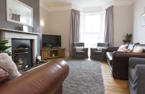 amenities: gas central heating in sitting room Range cooker with electric oven, gas hob, microwave, fridge/freezer, hostess trolley, washer/dryer (in utility), 2 x dishwashers, plasma TV, 3 x TVs with FreeSat, 2 x DVD, CD/radio, iPod dock, WiFi. Fuel, power . in rent. Bed linen and towels inc. in rent. 2 x cots, 2 x highchairs. Off road parking for 2 cars, plus roadside parking (permit required, available to purchase from owner at £6 per week). Small front garden with patio and seating for 10. Sorry, no pets & no smoking. Shop, pub & beach 2 mins walk. Note: Back entrance accessed by 6 steps, front garden accessed by 8 steps. Note: Steep stairs to 3rd floor rooms. Note: Short breaks to begin on Monday or Friday only. Note: There is a refundable £200.00 good house keeping bond on this property, payable to the owner.