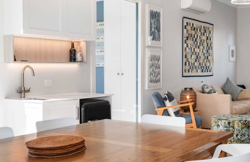 our fully equipped kitchen is a culinary haven: there is a fridge/freezer, microwave, double oven, gas cooktop, and dishwasher For the coffee enthusiasts, a dedicated coffee making station awaits your morning brew. Enjoy food prep at the spacious central bench, complete with stools for company.