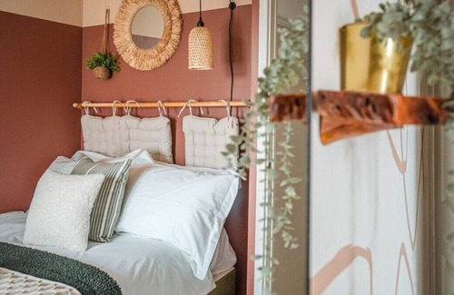 our retreat offers boho-chic decor, zen vibes & luxurious amenities, including a hot tub, cozy conservatory / gaming room, lush garden, 55" tv & playstation 5