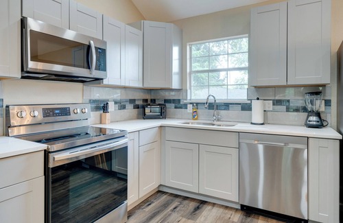 Discover Austin like a local when you stay at this 2-bed, 1-bath vacation rental. With a fully equipped kitchen, flat-screen TV, and private patio, this home away from home offers everything you need for a stress-free, long-term stay. Start your days with a hike through Barton Creek Greenbelt, then make your way to Downtown Austin for an evening of live music, delicious food, and vibrant art. After, return to this house and relax on the covered porch or fire up the grill for an al fresco dinner.