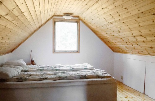 on peaceful mörkö you have the opportunity to enjoy a fantastic, seaside accommodation with beach plot only 10 meters to the sea and your own jetty with the opportunity to rent a boat! soothing and beautiful archipelago nature where sheep and cows graze along the water and good fishing You live here almost at the far end of Mörkö in two cottages with a terrace that connects the houses where you can look out over the bay. Enjoy a wonderful sauna and watch the beautiful sunset with the occasional Heron or maybe Sea Eagle flying by! This accommodation is distributed on a main house with loft. On the entrance level you will find the kitchen, living room and dining area with large windows facing the sea. Exit to the terrace and lovely fireplace in the living room. One bedroom with double bed and a bathroom with shower and sink (toilet is not used). Upstairs you will find the attic which is open down to the dining area and living room. There are four beds, one of which is a double bed. In the guest house you will find two more beds and an oversleep that you can also sleep in. Lovely windows facing the sea. From the outside you can reach the bathroom with toilet, sink and shower and wood-fired sauna. Made to treat you to a refreshing dip in the sea and to then warm you up in the sauna! Here is a hilly beach plot with its own jetty and pebble beach. Explore the other side of the bay where the famous Bergahus Cave is about 40 meters long. For those of you who like fishing, the fishing should be good around here. Take a trip to Skanssundet for a good bite to eat at a restaurant or why not a day trip to Trosa only 40 minutes by car from the cottage. Good to know It is possible to rent a boat on site from the owner, a Ryds550 with 115 hp. Booked and paid for by the owner on site. In the main house there is a steep staircase up to the loft. Toilet in the main cottage is not used, but only the toilet that is in the guest cottage. But shower and sink can be used in the main cottage. There are more beds than the number of guests allowed in the cottage, which gives you more choice how you want to sleep. The water here comes from the sea via a desalination plant.
