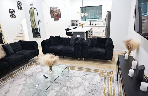 welcome to your private group-friendly retreat in downtown houston This one-of-a-kind listing combines two modern, side-by-side 3-bedroom townhomes into a 6-bedroom luxury stay — located inside a gated, safe, and quiet neighborhood, just minutes from major attractions, stadiums, and both Houston airports.