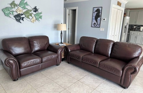 the living room is cozy and equipped with a sofa and a flat-screen tv for your entertainment The kitchen is fully stocked with all the essentials, including a blender, toaster, coffee maker, and microwave oven. You'll find a complete supply of dishes, bowls, silverware, stemware, and drinking glasses, ready for your culinary adventures. Whether you're lounging by the pool, enjoying the canal views, or exploring the nearby attractions, this home offers the perfect blend of comfort and convenience for your tropical retreat. don’t miss out on this fantastic opportunity to make lasting memories in a beautiful setting!