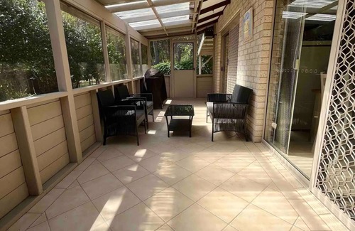 we have an enclosed outdoor sunroom with a small bbq, as well as a separate outdoor covered living area which looks out to the national park