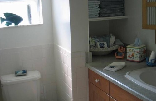 the oceanfront master bedroom features a queen size bed, tv, dvd, and vcr The ocean-view 2nd bedroom features a trundle bed and the 3rd bedroom features a full-size bed. The full bath features a walk-in shower. There is WiFi, a full-size W/D, cable TV, and all linens are supplied.