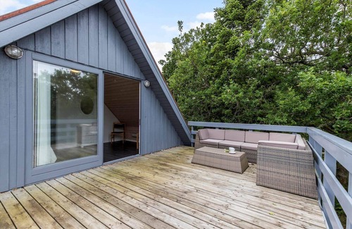 this spacious holiday apartment in fjellerup strand, east jutland, offers a comfortable retreat for up to 10 adults and 2 pets Covering 198 m² on a generous 1,211 m² property, it features five bedrooms with four double beds, two single beds, and two children's beds, ensuring ample sleeping arrangements for families.