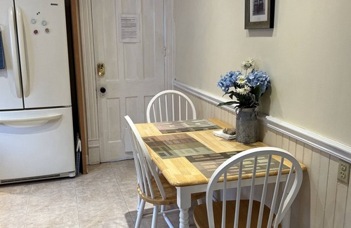 this charming downtown apartment has retained vintage architectural elements - 9-foot ceilings, original woodwork and stained glass windows are some of the vintage details The well-chosen décor provides a welcoming ambiance for you to enjoy.