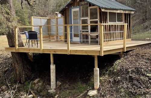 our new tiny space is situated near the center of the red river gorge, alongside the headwaters of the south fork of the red river This exceptional stay offers beautiful views through the window wall or the deck overlooking the creek. It is perfect for 1 or 2 people looking for a relaxing getaway.