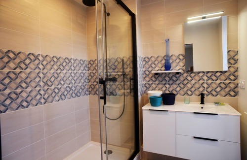 The apartment is in a private residence, located on the 1st floor with elevator. A 5 minutes walk from shops and the beach, its location is ideal because everything can be done on foot. Enjoy these few days in the Cotentin to come take a breath of fresh air facing the sea.