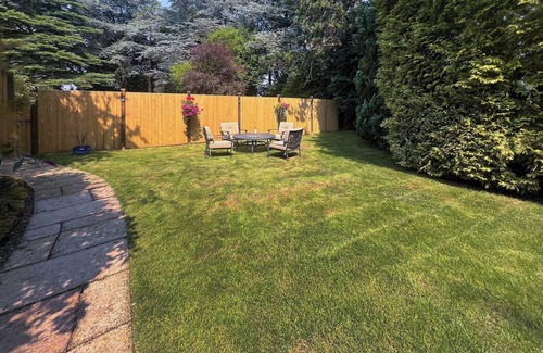 shower room: cubicle shower, heated towel rail, toilet Electric central heating, electricity, bed linen, towels and Wi-Fi included. Garden with sitting-out area and garden furniture. Bike store. Private parking for 2 cars. No smoking.. Treetops is a cosy retreat on Rodborough Common. This first floor apartment is ideal for couples exploring the Cotswolds. The open-plan living area features a smart TV, a well-equipped kitchen/dining area. Treetops offers a spacious bedroom with a kingsize bed and en-suite facilities. There is a separate boot/utility room with laundry facilities and a toilet, and lockable storage for your bike on-site.