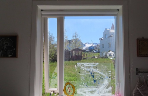 A modern artistic cosy flat on ground floor, with a spacious garden in the center of Siglufjörður. With two bedrooms, a living room and kitchen like ensuite. TV and free wifi and all basic equipments inclusive.