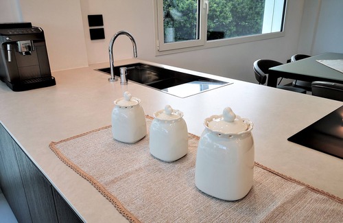 enjoy a superlative stay here and an experience that you will remember for a long time! the villa is furnished to a very high standard - from the very comfortable beds to the kitchen with its branded appliances and the designer bathrooms, where every detail is well thought (have a look at the pictures!) The modern air conditioning, the photovoltaic system on the roof and the perfect thermal insulation make this house a technological and ecological highlight.