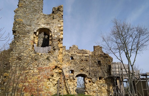 the hiring is at the top of a hill near the ruins of a 13th century castle